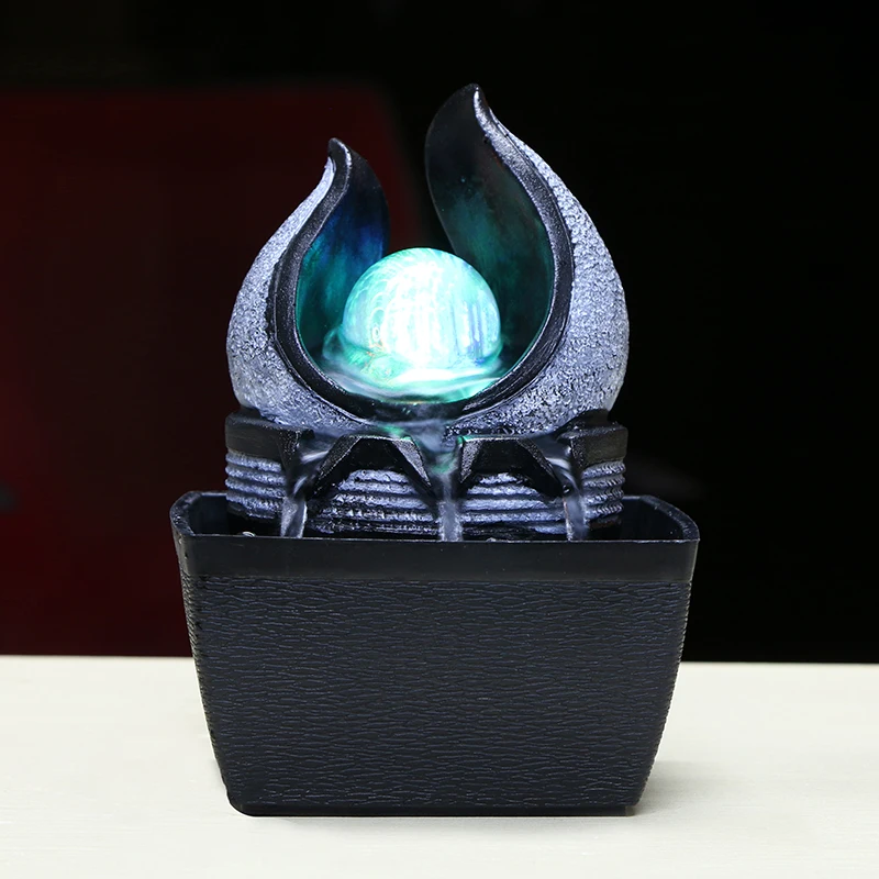 110/220V Geometric Shapes Feng Shui Crystal Ball Resin Water Fountain Home Wine Cabinet Brief Decor