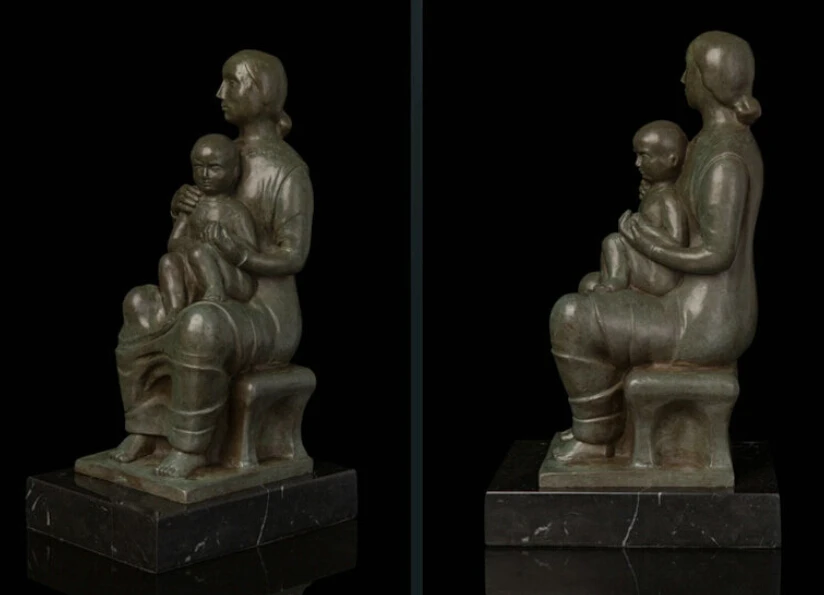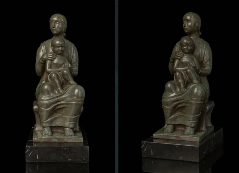 ORIGINAL Art Deco Sculpture Mother And Son Family Theme Bronze Statue R0713