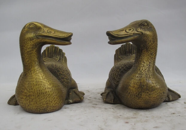 HIGH QUALITY wholesale factory Chinese Folk Fengshui Bronze Copper Lovely Duck Family Decor Statue pair